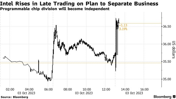 該分拆計劃與英特爾分拆自動駕駛汽車芯片制造商Mobileye Global Inc(MBLY.US)的做法類似。去年,該公司分拆了該業務,并將其中一部分上市。