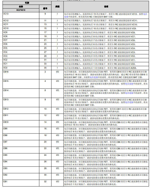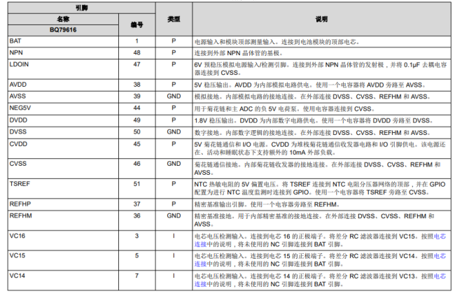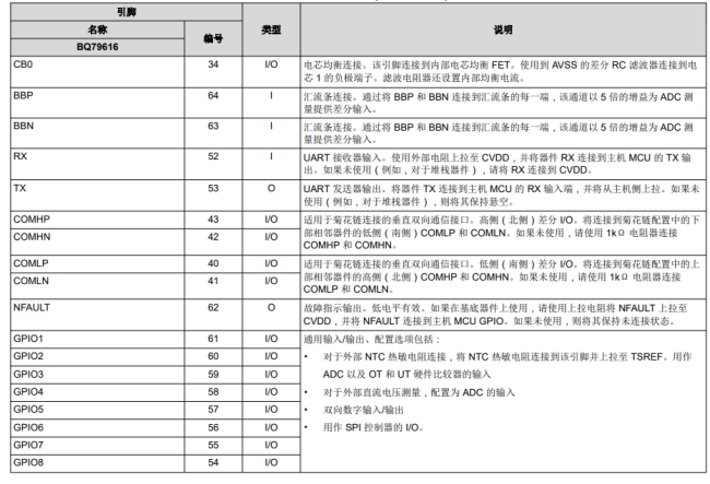 BQ79616引腳配置和功能