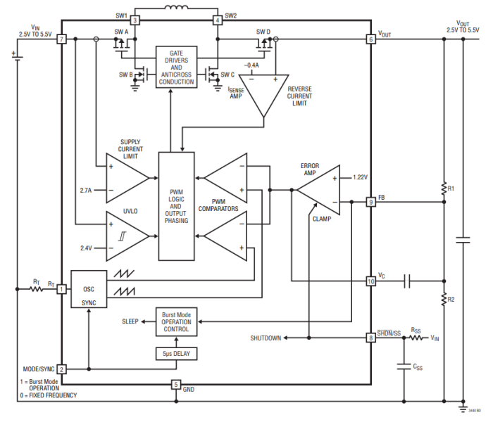 VIN=3.6 V時(shí)500 nA輸入靜態(tài)電流(沒有開關(guān)頻率)