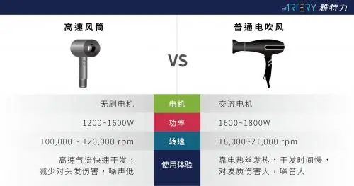 隨著人們消費力及現代工業技術水平的提升,電吹風市場步入了綠色節能、高效多功能化產品的發展階段,人們對電吹風的需求和要求都不斷增加。傳統電吹風采用交流電機使用壽命有限,維護不方便,能耗高、電機可調控性不高,已不能滿足新一代消費者使用需求。高速風筒憑借其精巧的外觀設計、舒適的手感、更低的噪聲、出色的干發效果,快速博得消費者的青睞,成為電吹風產品迭代升級的方向。