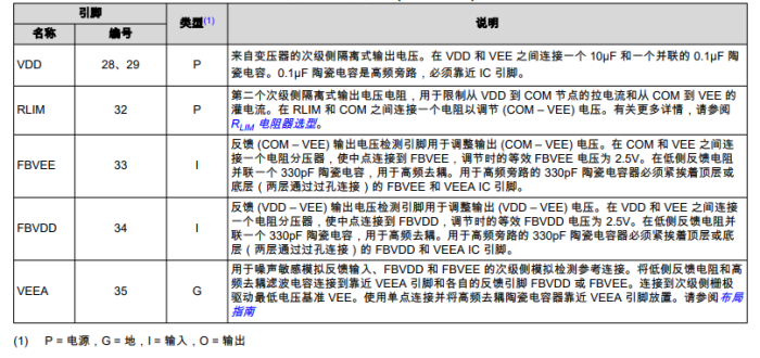 可調(diào)節(jié)的 (COM – VEE) 輸出電壓(通過外部電阻器):在整個溫度范圍內(nèi)為 2.5V 至 (VDD – VEE),調(diào)節(jié)精度為 ±1.3%