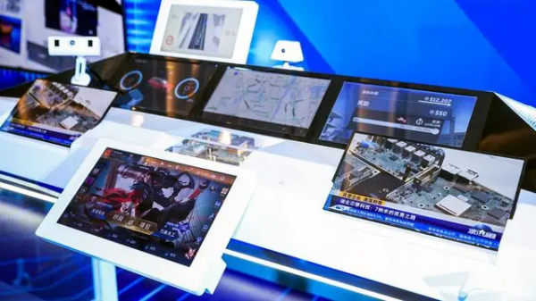 搭載芯片“龍鷹一號(hào)”的車機(jī)全功能演示臺(tái)。