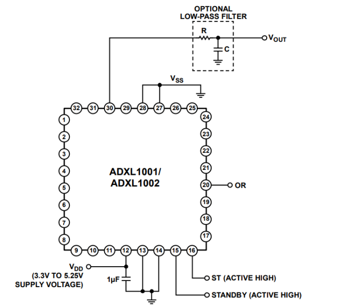ADXL1001/ADXL1002 擁有集成的全靜電自檢 (ST) 功能和超范圍 (OR) 指示器,可以提供先進(jìn)的系統(tǒng)級功能并可用于嵌入式應(yīng)用。憑借低功耗和 3.3 V 至 5.25 V 的單電源供電,ADXL1001/ADXL1002 還允許進(jìn)行無線感測產(chǎn)品設(shè)計。ADXL1001/ ADXL1002 提供 5 mm × 5 mm × 1.80 mm LFCSP 封裝,可在 ?40°C 至 +125°C 的溫度范圍內(nèi)工作。