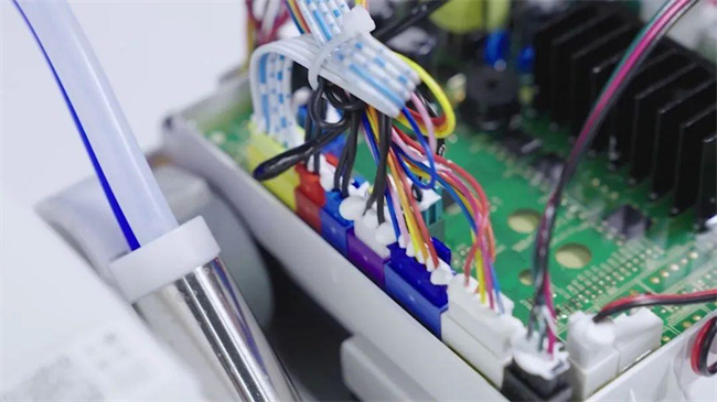 暖風風機位于主控板下方,其加熱及電機控制接線通過接頭接入主板。