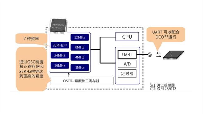 內置的片內高速振蕩器最高可達32MHz,通過OSC精度校正寄存器可以將時鐘修調到±1%的精度,所以可以直接使用內部時鐘進行串口通訊,這也是我們在電路板上沒有看到使用外部晶體振蕩器的原因。