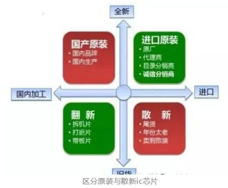 市面上的ic芯片林林總總、各式各樣,不注意區(qū)分,有時(shí)很難看出各種料有何不同。現(xiàn)在我們看看有哪些區(qū)分原裝與散新芯片的要點(diǎn)。