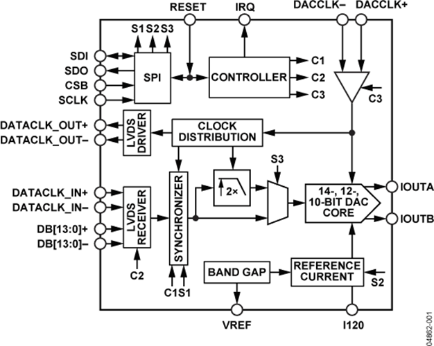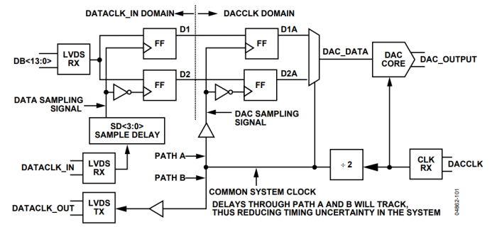雙通道數據速率(DDR) LVDS數據接收器支持最大1200 MSPS的轉換速率。