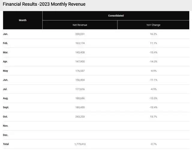 11月10日,臺積電(TSM.US)公布2023年10月營收報告。數據顯示,臺積電10月合并營收為新臺幣2432.03億元,環比增長34.8%、同比增長15.7%。這是臺積電自今年2月以來月度營收的首次同比正增長,突顯出全球芯片市場似乎正逐漸從低谷中復蘇。受此消息提振,臺積電美股上周五收漲6.35%,創下5月份以來的最大單日漲幅。