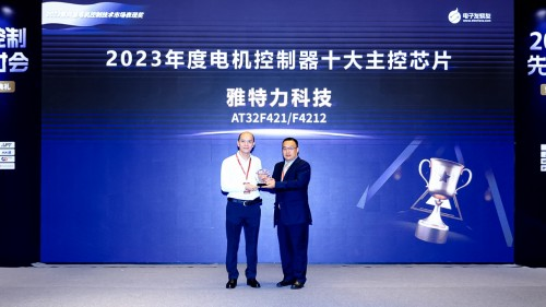 11月16日,由電子發(fā)燒友主辦的“2023電機(jī)控制先進(jìn)技術(shù)研討會(huì)”在深圳益田威斯汀酒店成功舉行。活動(dòng)同期,“2023年BLDC電機(jī)技術(shù)市場(chǎng)表現(xiàn)獎(jiǎng)”年度評(píng)選活動(dòng)揭曉,雅特力科技AT32F421/F4212系列微控制器榮獲“2023年度電機(jī)控制器十大主控芯片”。