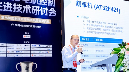 此次研討會(huì)匯聚了來自國內(nèi)外電機(jī)領(lǐng)域的專家、學(xué)者、工程師和業(yè)界領(lǐng)袖,共同探討電機(jī)發(fā)展技術(shù),推動(dòng)行業(yè)創(chuàng)新發(fā)展。雅特力受邀出席此次會(huì)議,產(chǎn)品市場(chǎng)總監(jiān)林金海發(fā)表了題為“雅特力AT32 MCU實(shí)現(xiàn)高效電機(jī)驅(qū)動(dòng)控制與應(yīng)用”的主題演講,分享了雅特力電機(jī)團(tuán)隊(duì)最新的技術(shù)研究成果及在電機(jī)市場(chǎng)的最新應(yīng)用!