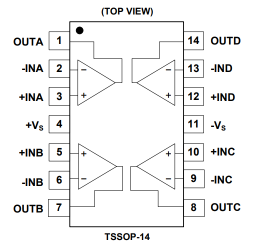 SGM8544C采用綠色TSSOP-14封裝。它是在擴(kuò)展的工業(yè)溫度范圍(-40℃至+125℃)內(nèi)指定的。