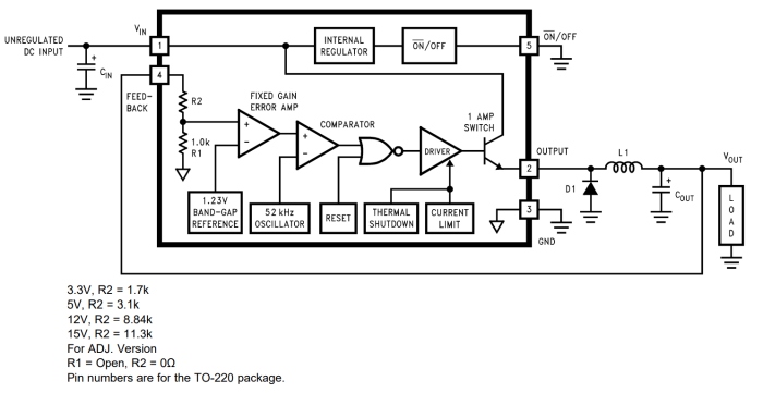 這些調節器需要最少數量的外部組件,使用簡單,包括內部頻率補償和固定頻率振蕩器。