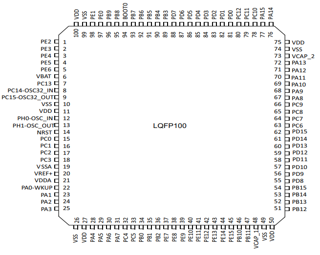 STM32F722VCT6微控制器提供LQFP100封裝。所包含的外圍設備集會隨著所選設備的變化而變化。