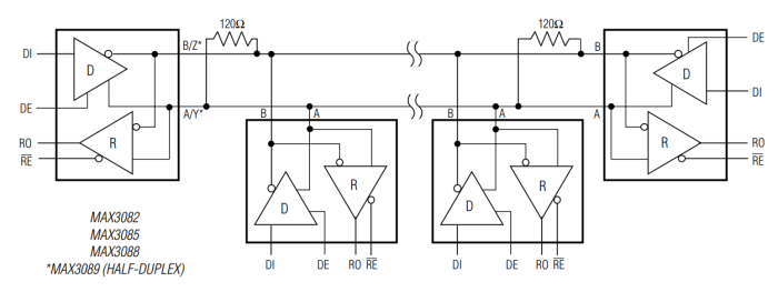 MAX3082CPA具有低擺率驅動器,可充分降低EMI并減少因電纜端接不當引起的反射,從而實現高達115kbps的無誤差數據傳輸。