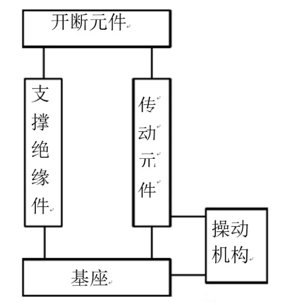 隔離開關(guān)都是有開端元件、支持絕緣件、傳動元件、基座及操作機構(gòu)五個基本部分組成,其方框圖如圖所示。