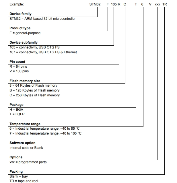 STM32F105VCT7的料號解釋圖