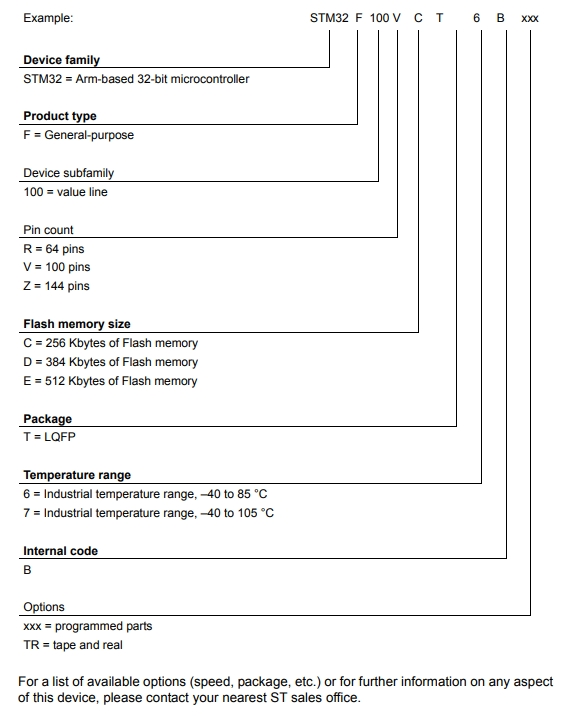 STM32F100ZET7B的型號(hào)解釋圖