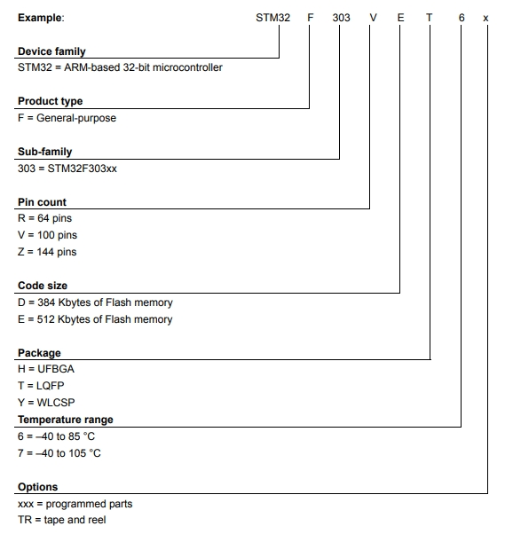 STM32F303VET6TR的型號解釋圖