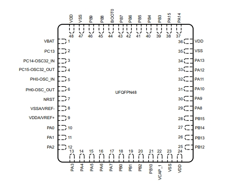 STM32F413CGU6的封裝引腳圖