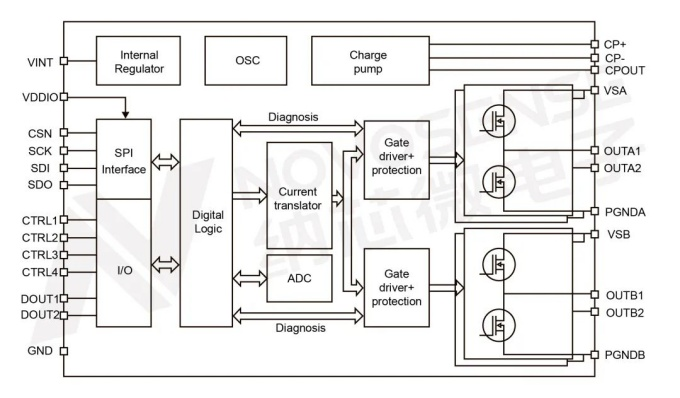 可編程輸入IO口,用于直接控制步進時鐘/方向/保持,或者直接半橋控制