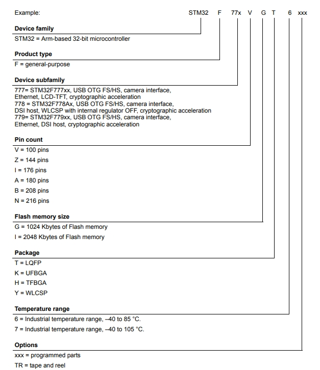 意法半導(dǎo)體STM32F779IIT6的型號(hào)解釋圖