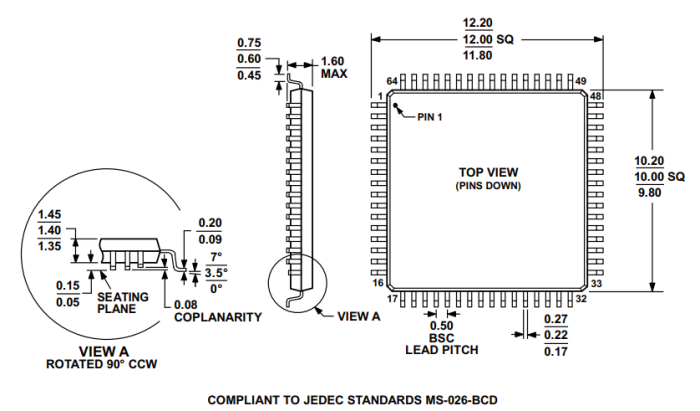 64引腳LQFP封裝