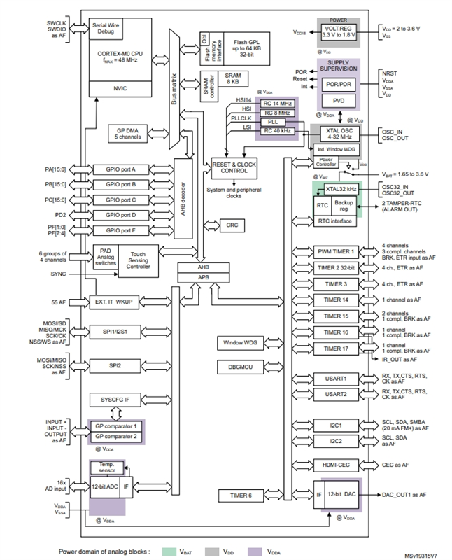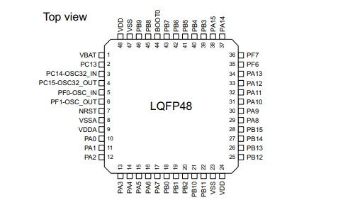 意法半導體STM32F051C8T7工作在-40到+85°C和-40到+105°C的溫度范圍內,從2.0到3.6V電源。一套全面的省電模式允許設計低功耗應用程序。