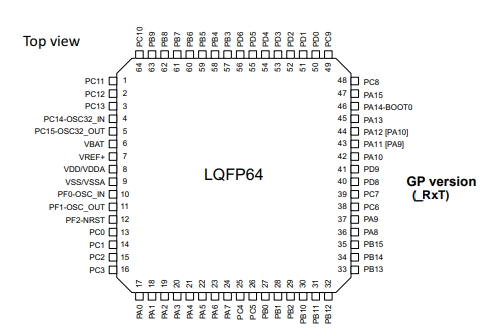 意法半導(dǎo)體STM32G0B1RCT6的引腳封裝圖