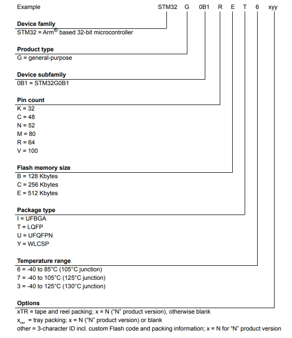 意法半導體STM32G0B1VET6的型號解釋圖