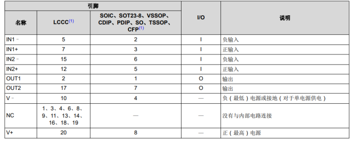LM358DR的引腳和引腳功能
