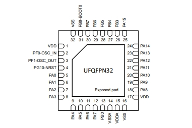 3、多種外設接口:STM32G431KBU3內置了豐富的外設接口,包括通用定時器、串行通信接口、模擬/數字轉換器等,可以滿足多種應用場景的接口需求。