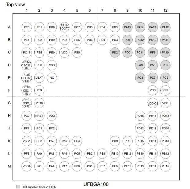 意法半導(dǎo)體STM32F091VCH7的引腳封裝圖
