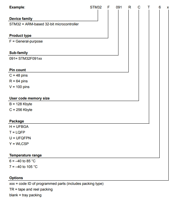 意法半導(dǎo)體STM32F091VCH7的型號解釋圖