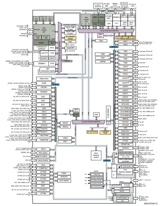 STM32H745ZGT6的功能方框圖