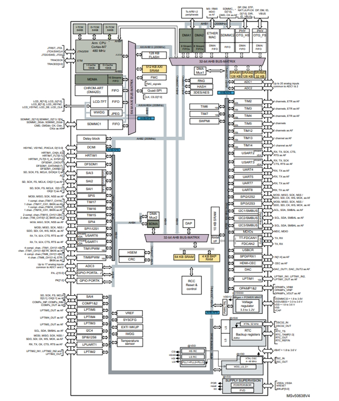 STM32H750IBT6的功能方框圖