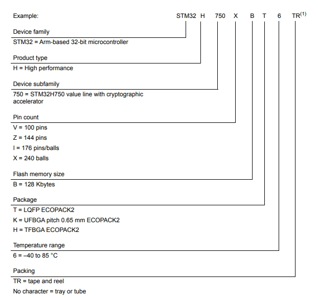 STM32H750IBT6的型號(hào)解釋圖
