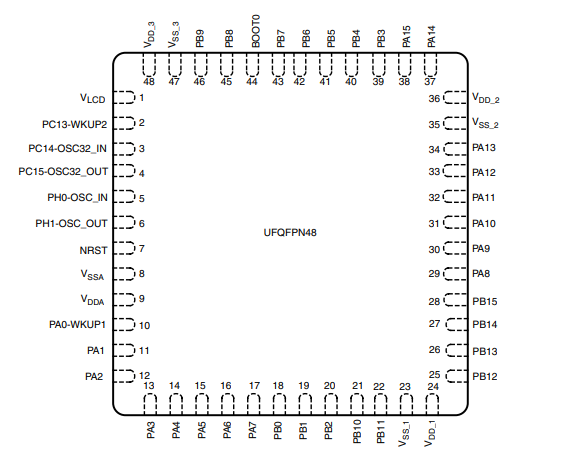 意法半導體STM32L151CBU6的引腳封裝圖