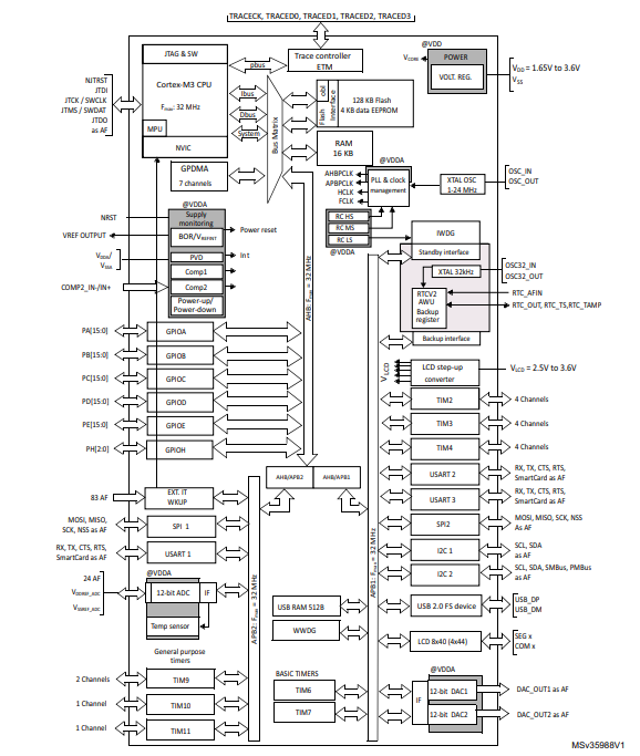 意法半導體STM32L151CBU6的功能方框圖