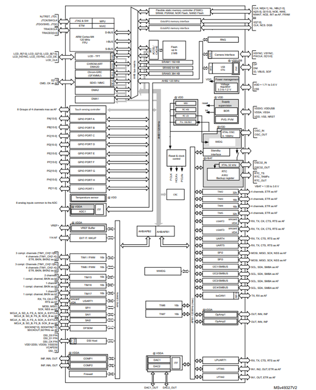 意法半導(dǎo)體STM32L4R9ZIY6TR的功能方框圖