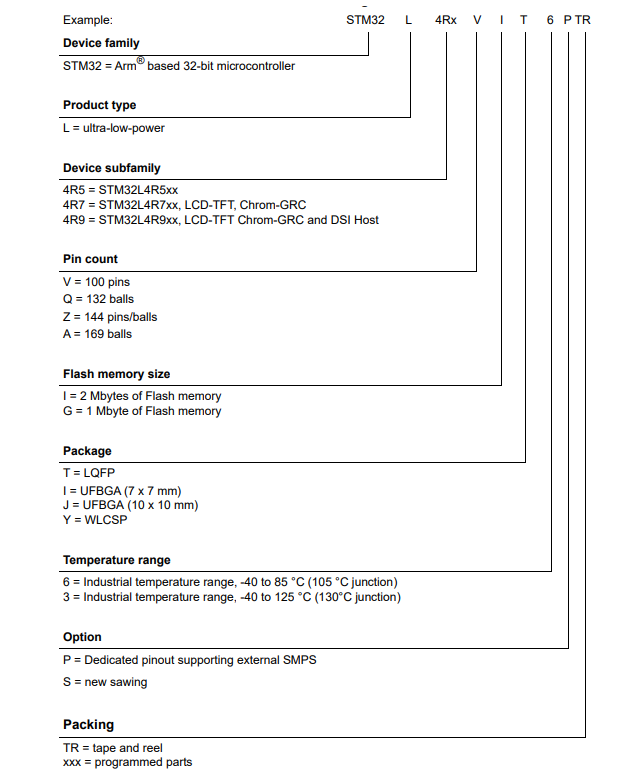 意法半導(dǎo)體STM32L4R9ZIY6TR的型號(hào)解釋圖