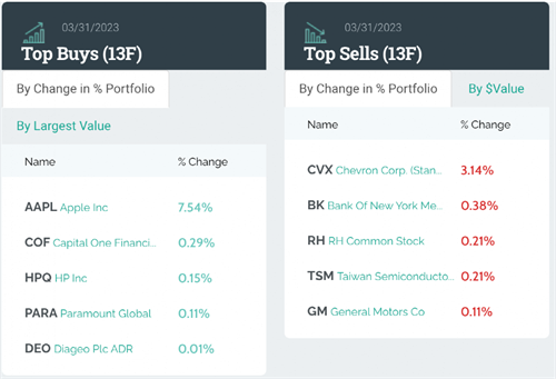 巴菲特一季度增減持變化,來源:Whalewisdom