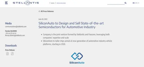 兩家公司在一份聲明中表示,這家名為SiliconAuto的合資企業(yè)將為Stellantis(包括其新的“STLA Brain”電子和軟件架構(gòu))、富士康和其他客戶提供服務(wù)。