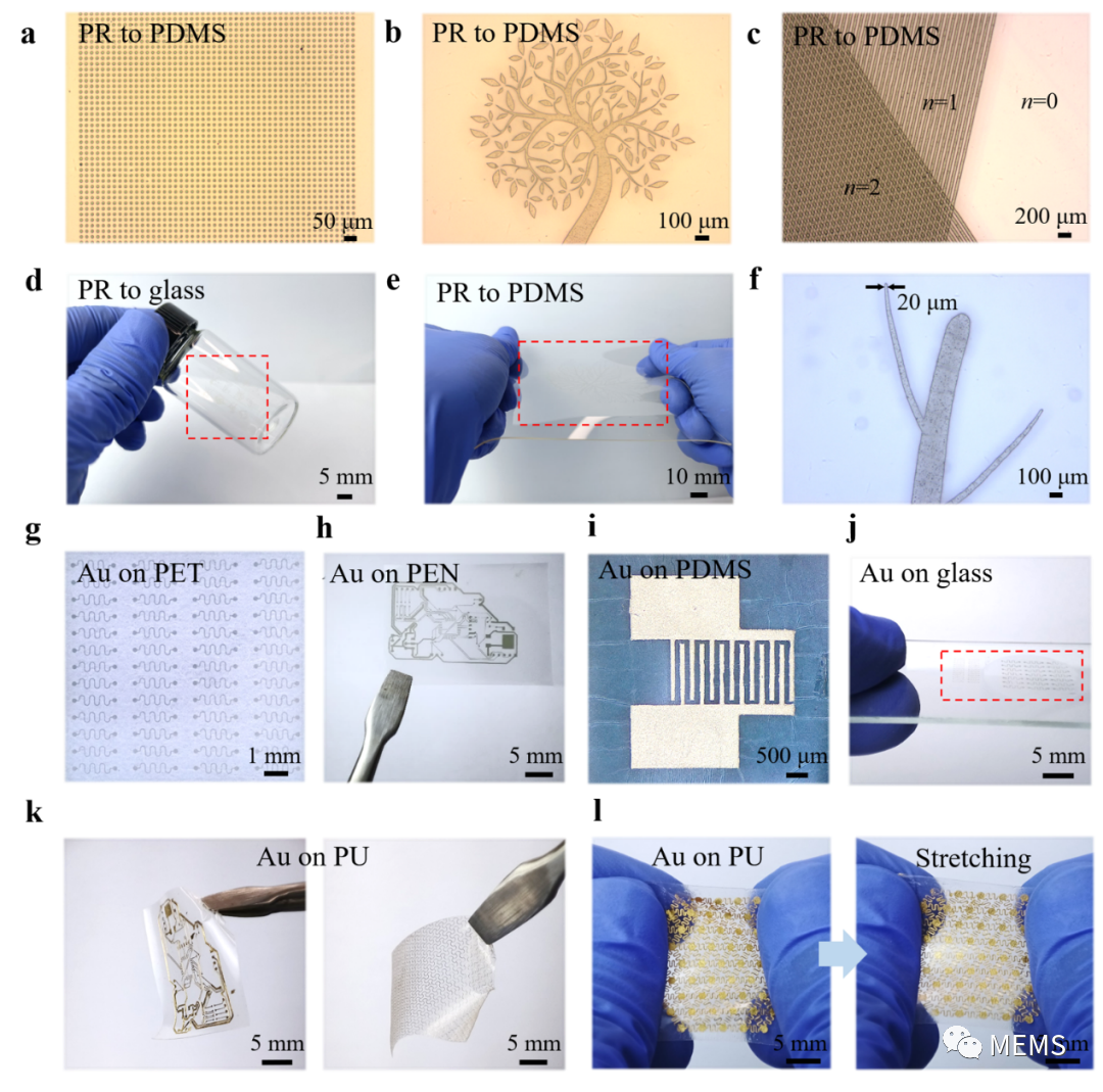 高分辨、高密度、跨尺度光刻膠結構干法轉印及可延展電子圖案制造展示