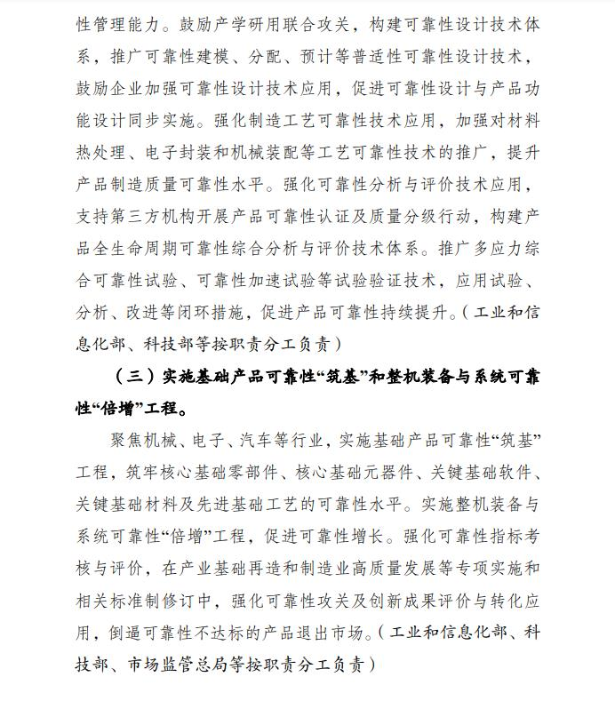 工信部等五部門印發(fā)《制造業(yè)可靠性提升實(shí)施意見》提出,圍繞制造強(qiáng)國、質(zhì)量強(qiáng)國戰(zhàn)略目標(biāo),聚焦機(jī)械、電子、汽車等重點(diǎn)行業(yè),對標(biāo)國際同類產(chǎn)品先進(jìn)水平。其中,電子行業(yè)方面,重點(diǎn)提升電子整機(jī)裝備用SoC/MCU/GPU等高端通用芯片、氮化鎵/碳化硅等寬禁帶半導(dǎo)體功率器件、精密光學(xué)元器件、光通信器件、新型敏感元件及傳感器、高適應(yīng)性傳感器模組、北斗芯片與器件、片式阻容感元件、高速連接器、高端射頻器件、高端機(jī)電元器件、LED芯片等電子元器件的可靠性水平。提升高頻高速印刷電路板及基材、新型顯示專用材料、高效光伏電池材料、鋰電關(guān)鍵材料、電子漿料、電子樹脂、電子化學(xué)品、新型顯示電子功能材料、先進(jìn)陶瓷基板材料、電子裝聯(lián)材料、芯片先進(jìn)封裝材料等電子材料性能,提高元器件封裝及固化、外延均勻、缺陷控制等工藝水平,加強(qiáng)材料分析、破壞性物理分析、可靠性試驗(yàn)分析、板級可靠性分析、失效分析等分析評價(jià)技術(shù)研發(fā)和標(biāo)準(zhǔn)體系建設(shè),推動在相關(guān)行業(yè)中的應(yīng)用。