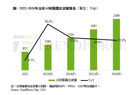 2023年全球AI服務器出貨量將增長38.4%,AI芯片將增長46%!