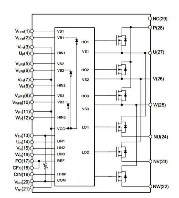 IPM29- SiC_MOS新系列產驅動集成了自舉電路、一體化使能與可調故障輸出(FO)、防直通互鎖、欠壓保護與溫度輸出功能,優化的高壓柵極驅動配合內集成的高速、低阻抗SiC_MOSFETS逆變橋,極大地改善產品工作EMI特性與開關損耗,適用于高頻開關需求的電機驅動應用。