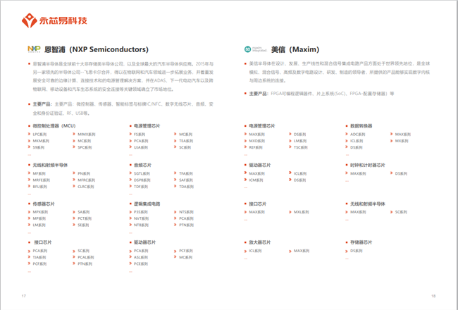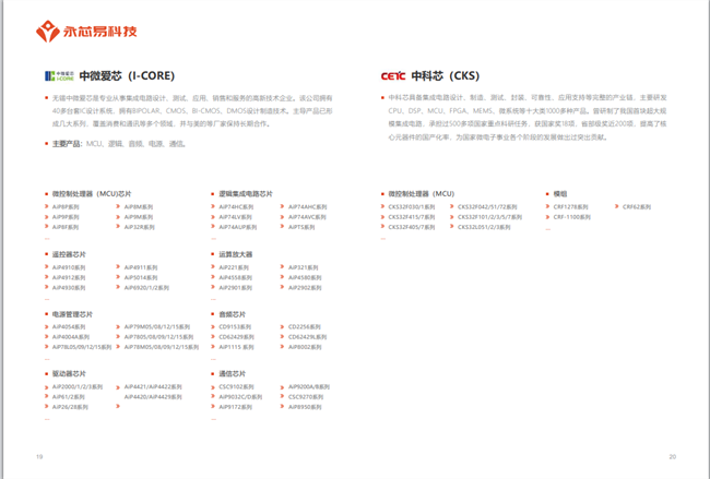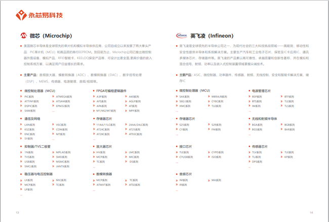 企業(yè)主營(yíng):電源IC、射頻IC、接口IC、數(shù)字信號(hào)處理器(DSP)、單片機(jī)(MCU)、場(chǎng)效應(yīng)管(MOSFET)、單管(IGBT)、碳化硅(SIC)、運(yùn)放、存儲(chǔ)、傳感器、可控硅等