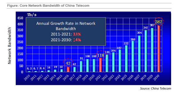 盡管在這個(gè)十年的剩余時(shí)間里,預(yù)計(jì)網(wǎng)絡(luò)帶寬的增長率較低,但核心網(wǎng)絡(luò)基礎(chǔ)設(shè)施的升級(jí)將繼續(xù)進(jìn)行。所有中國服務(wù)提供商計(jì)劃在2023年底或最遲2024年開始部署400G QPSK系統(tǒng)。