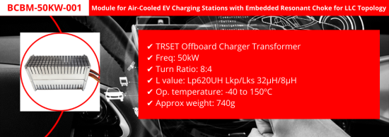 BCBM-50KW-001 50KW帶LLC諧振扼流圈的非車(chē)載充電變壓器采用了先進(jìn)的設(shè)計(jì)元素,在優(yōu)化產(chǎn)品性能的同時(shí),還可以解決熱管理的關(guān)鍵問(wèn)題。該產(chǎn)品的關(guān)鍵特征是嵌入諧振扼流圈的LLC (LCLC)拓?fù)洌瑥亩鴮?shí)現(xiàn)高效的能量轉(zhuǎn)移,減少開(kāi)關(guān)損耗。