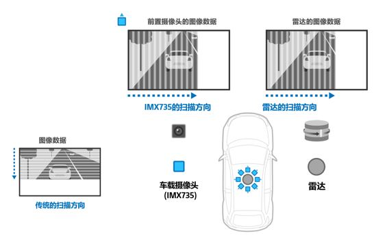 CMOS圖像傳感器從像素讀取信號時,一般會逐行縱向輸出像素。而該產(chǎn)品采用的讀出方法是水平方向逐列輸出的讀出方式,更容易與同樣采用水平掃描方法的機械掃描激光雷達同步。這意味著,搭載該產(chǎn)品的車載攝像頭輸出的信息可以更容易地與激光雷達收集到的信息融合。這將從整體上提高自動駕駛系統(tǒng)的檢測和識別能力。